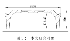 本文研究對象為大型客車專用鋁合金車輪,最終成形后車輪的外部尺寸為 Φ606,總高 210,鍛件示意圖如圖 1-6 所示。所用旋轉(zhuǎn)輾鍛壓力機(jī)的夾角γ 為固定值 5°,該夾角不僅能夠有效保證鋁合金棒料在成形過程中金屬流動的合理性,同時使得工件在生產(chǎn)過程中所需成形力最小。